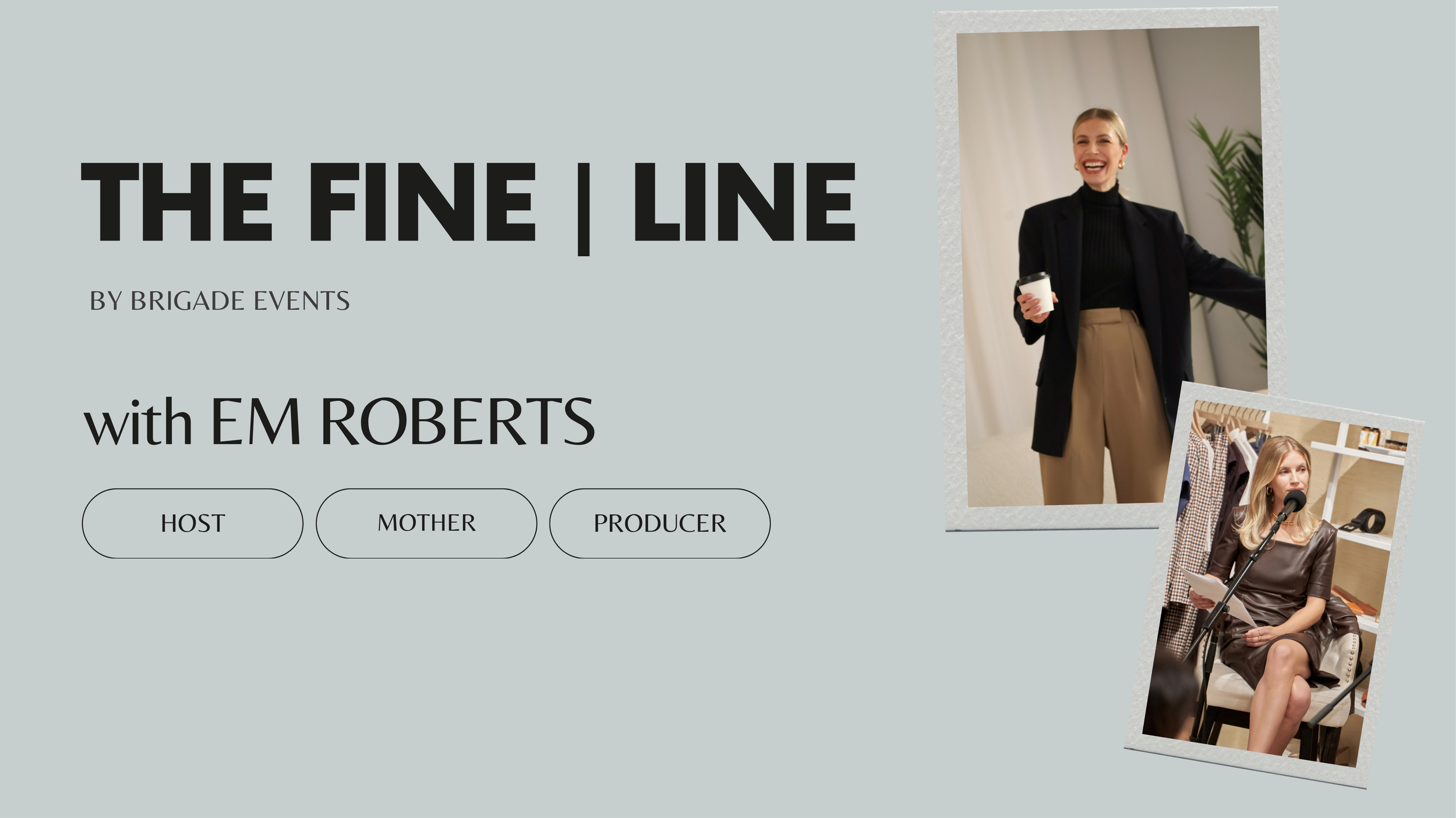 Motherhood has sharpened that instinct even further. In this conversation for The Fine Line, Em reflects on how becoming a mom has made her more strategic, decisive, and intentional with her energy — bringing a new clarity to both her work and her priorities. She shares how she stays grounded and connected to her family amid a fast-moving career, why the “mundane” moments matter most, and what’s next as she brings her podcast conversations into real-life spaces. At its core, Em’s perspective is about presence over perfection, focus over noise, and building a life (and career) that actually fits the season you’re in.
